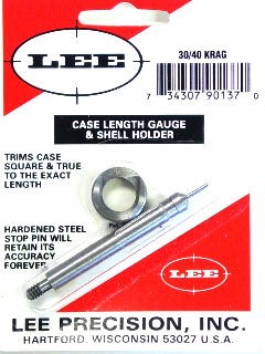 Used with the Cutter and Lock Stud or Zip Trim. The first step to successfully trimming brass cases with the Lee Case Length Gauge and Shell Holder is to take the Lee Lock Stud (sold separately) and screw it into the shell holder. Next the Length Gauge needs to be screwed into the Case Trimmer Cutter (sold separately).