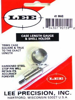 Used with the Cutter and Lock Stud or Zip Trim. The first step to successfully trimming brass cases with the Lee Case Length Gauge and Shell Holder is to take the Lee Lock Stud (sold separately) and screw it into the shell holder. Next the Length Gauge needs to be screwed into the Case Trimmer Cutter (sold separately).