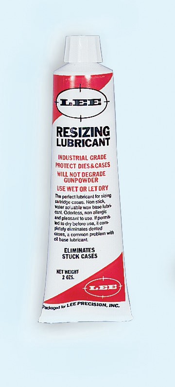 Lee Sizing and Case Lube helps eliminate stuck and dented cases and makes resizing easier. The formula comes in a plastic tube, is non-sticky, non-allergenic, is pleasant to handle, can be thinned with water and is efficient, a little goes a long way.