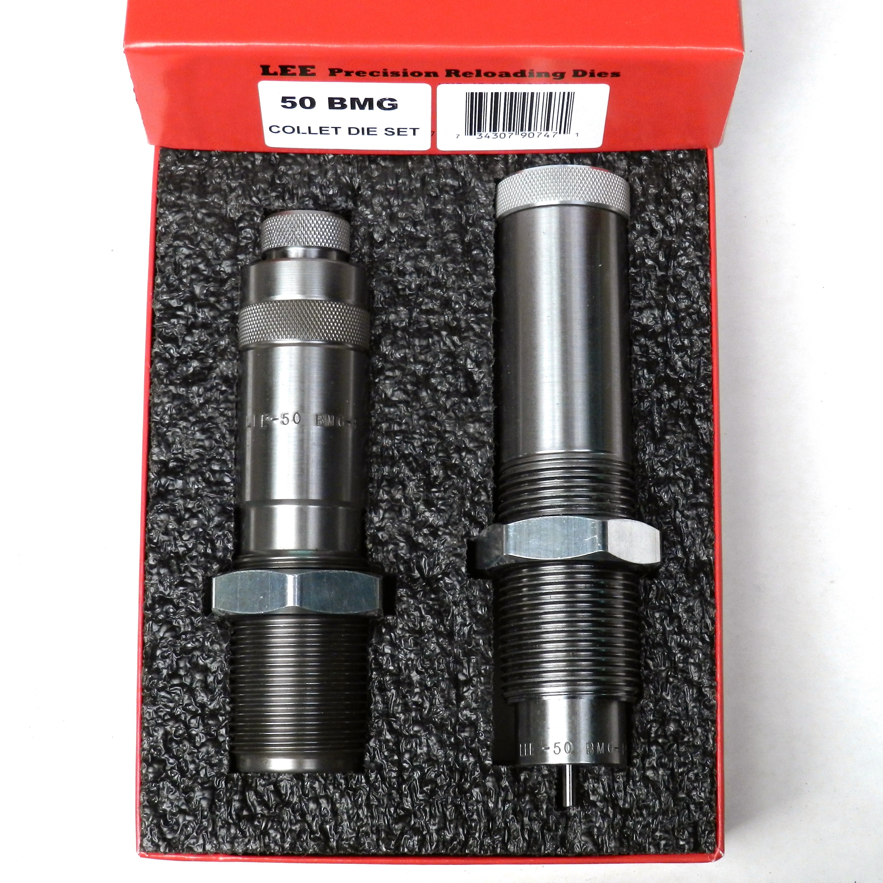 Lee Large series (1 1/4x12 thread) collet necksizing 2-die set for 50 BMG, used with the Classic Cast Press only.