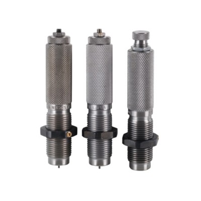 The Lyman Deluxe 3-Die Rifle Sets most unique feature is a Carbide Sizing Button Assembly that is super hard and slick, eliminating the need for inside the neck case lube and prevents case stretching resulting in reduced case trimming. Another feature of the Lyman Carbide Sizing Button Assembly is the button can be adjusted so the user can maximize the leverage available at different positions in the operation of the press lever. The Carbide Sizing Button is used in the loaders choice of a Full Length Sizing Die and a Neck Sizing Die included in the 3 Die set along with a Bullet Seating Die.