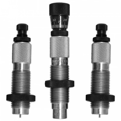 The Master Hunter “Deluxe” three (3) Die Set combines the Full Length Sizing Die with a Carbide Size Button, Competition Seating Die, and a Standard Neck Sizing Die.