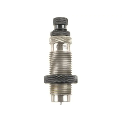 The Redding Type S Bushing Neck Die allows the reloader to precisely control case neck size and tension. Type S Dies use interchangeable sizing bushings that are available in .001" increments. The adjustable decapping rod allows positioning the bushing to resize only a portion of the neck as desired. A decapping pin retainer is also supplied with all Type S-Bushing Dies. This enables neck sizing without the use of the size button for those who sort and/or turn case neck for uniformity. Bushing and shellholder are sold separately.